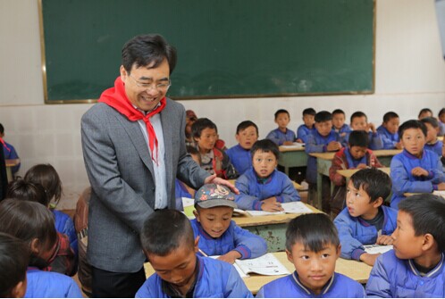 SDLG General Manager Wen Degang greets the students at Butuo County Primary School.