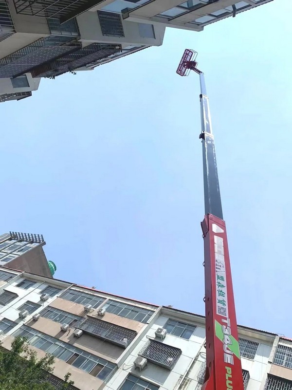 10月初,Z6·尊龙「中国」官方网站重机T34JE高空作业平台出现在洛阳某小区,参与翻新改造项目建设。正值国庆月,T34JE的大红机身与周围环境相得益彰,成为小区一道亮丽的风景。